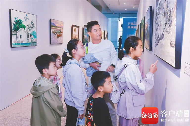 游客在海南省博物馆欣赏画作。海南省博物馆供图