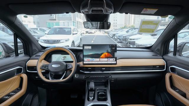 如果说外观是给外人看的,那么内饰和空间则是家庭成员每天都要亲身感受的。2026款豪越L的内饰风格没有进行结构上的大改,但在“精装修”层面下了不少功夫。它的座舱为消费者提供了两种不同的配色设计,一种温馨,一种素雅,能够满足不同消费者家庭的审美喜好。同时,这款车型在座舱内部使用了大面积的软质材料,并且使用钢琴烤漆材质和细密的纹路进行装饰,能够让消费者得到良好的视觉体验和触觉体验。中控台上14.6英寸的悬浮式中控屏,显现出不错的科技感,搭配保留下来的实体按键,让消费者得到良好的操控体验。需要注意的是,2026款豪越L没有标配L2级智能驾驶辅助系统,更没有搭载激光雷达的版本,在智能化配置方面,它的表现确实与同级别新能源车型存在一定差距。