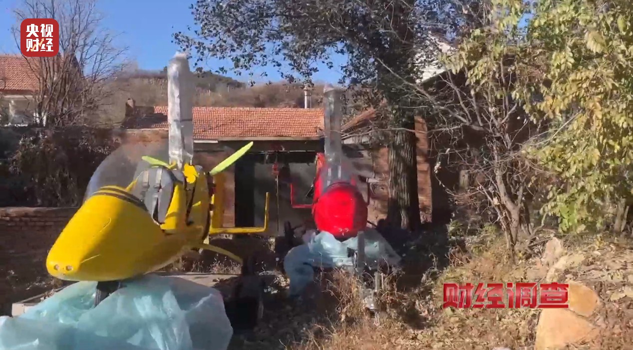 记者来到河北承德,见到了卖家大海。大海做好两架全新旋翼飞机停在附近空地,称可随时提走,也能按需制作。