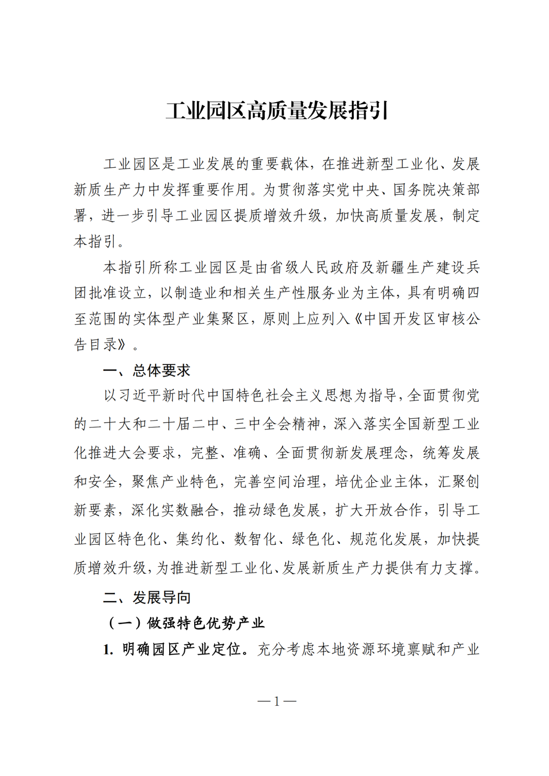 工业和信息化部国家发展改革委关于印发《工业园区高质量发展指引》的通知