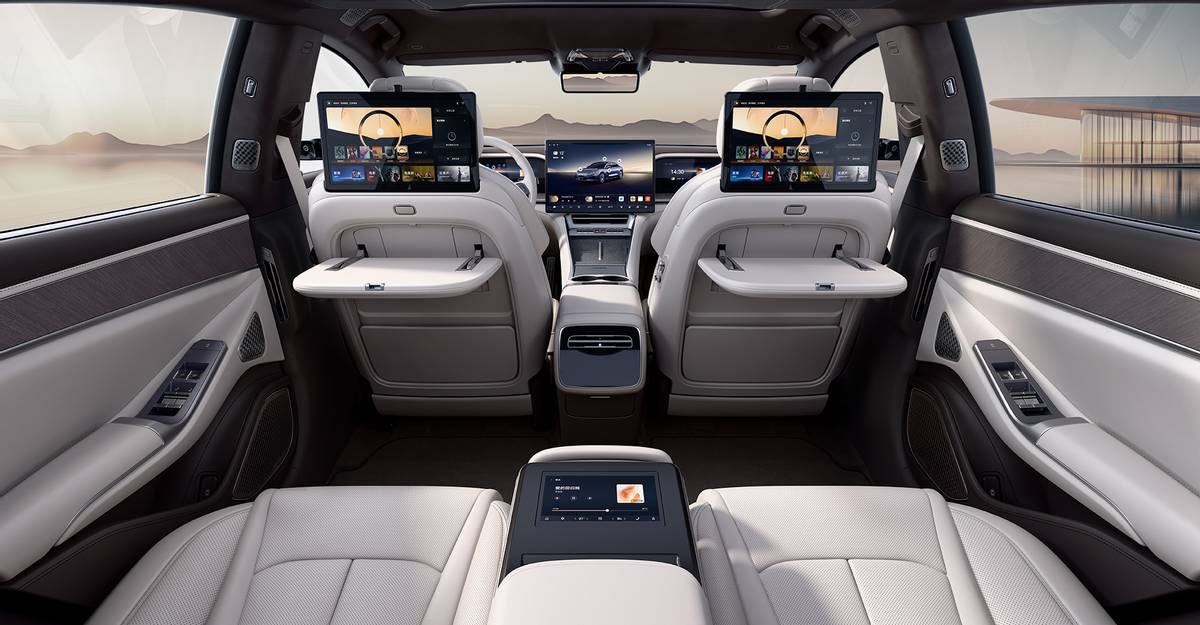 腾势Z9的内饰设计则更加注重科技感和厚重感。新车采用四幅式方向盘,中间配备悬浮效果的大屏,副驾驶前侧也有一块多媒体大屏,营造出不错的科技氛围和品质感。新车配备第二排双浮感舒享座椅,具备一键舒躺模式、十项电动调节、十点按摩等功能,搭配易三方技术和空气悬架,进一步提升了驾乘舒适性。